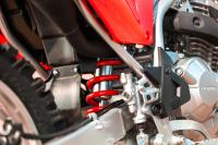 No que diz respeito ao incremento da praticidade/funcionalidade, a CRF 300F traz um cavalete reposicionado que permite a mesma estabilidade em estacionamento, mas melhora a distância em relação ao solo e reduz a chance de o componente raspar no solo ou em obstáculos com facilidade.